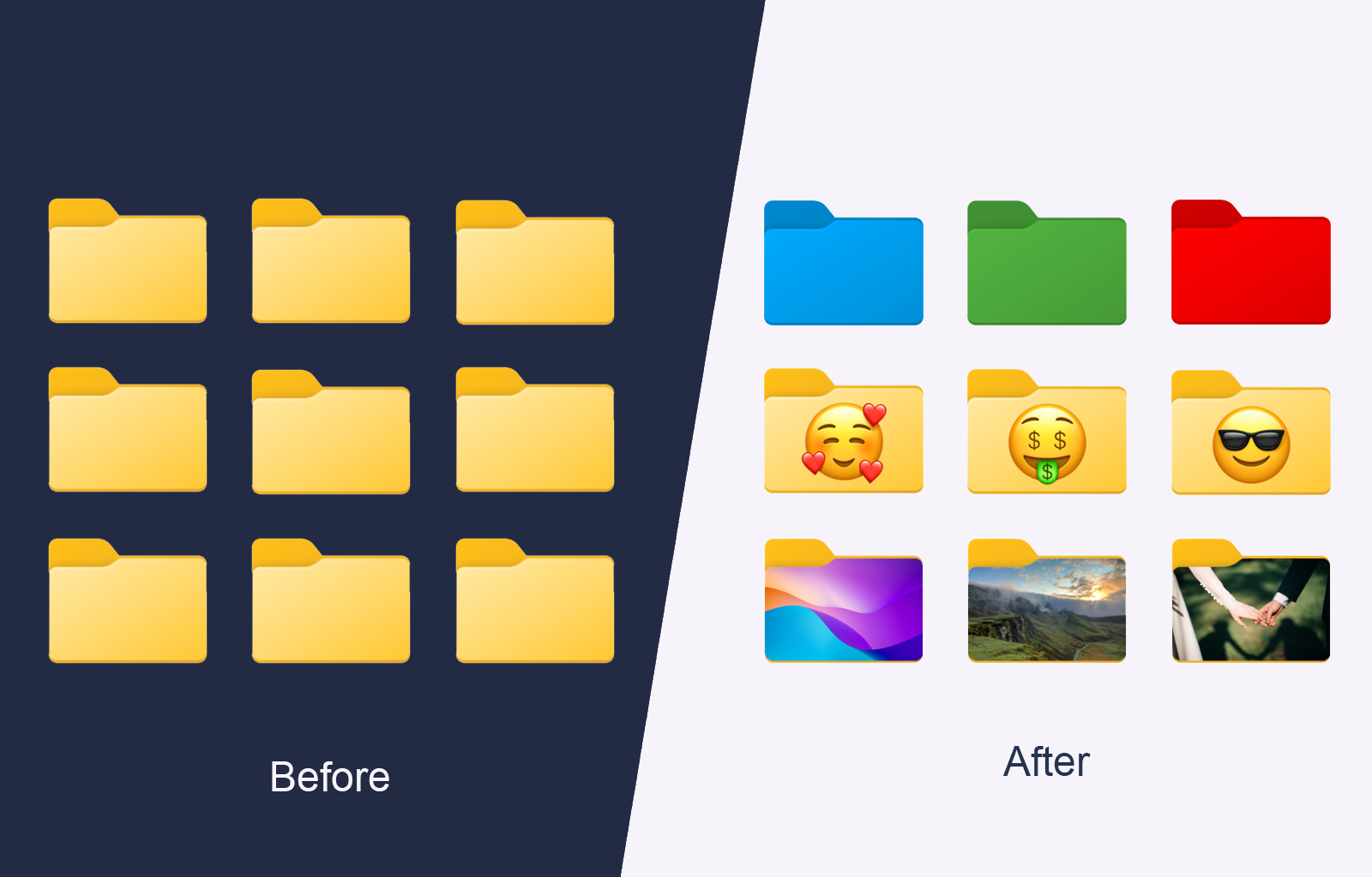 Designed for people who want faster recognition, cleaner structure, and a more visual way to keep files organized.